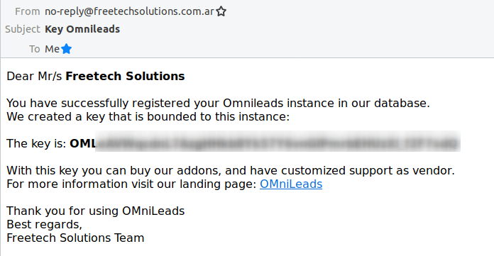 A futuro, aquellos integradores certificados (que han aprobado el programa de certificación oficial de OMniLeads), a partir de registrar la instancia, podrán firmar la instalación con el código de certificación, logrando así dejar una constancia de que la plataforma ha sido desplegada y configurada por un Ingeniero IT certificado por el fabricante.