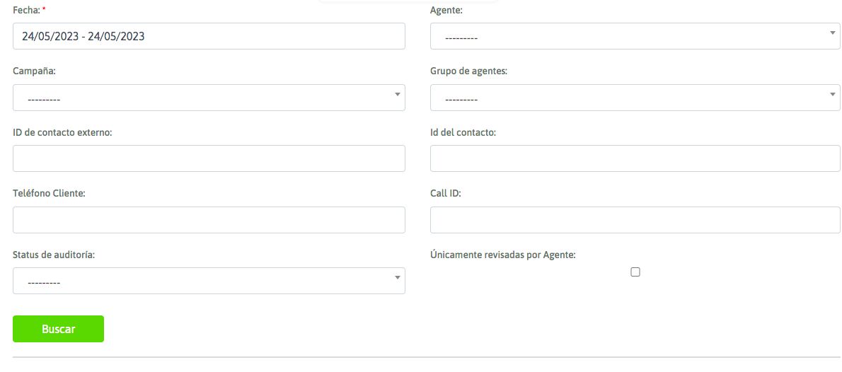 The module has the typical search filters (by agent, campaign, date, etc.). However, it is worth pointing out that it is possible to search for records by contact ID in the database. That is, use the unique identifier of the contact within the database uploaded to the system. To do this, the External Contact ID field is used.