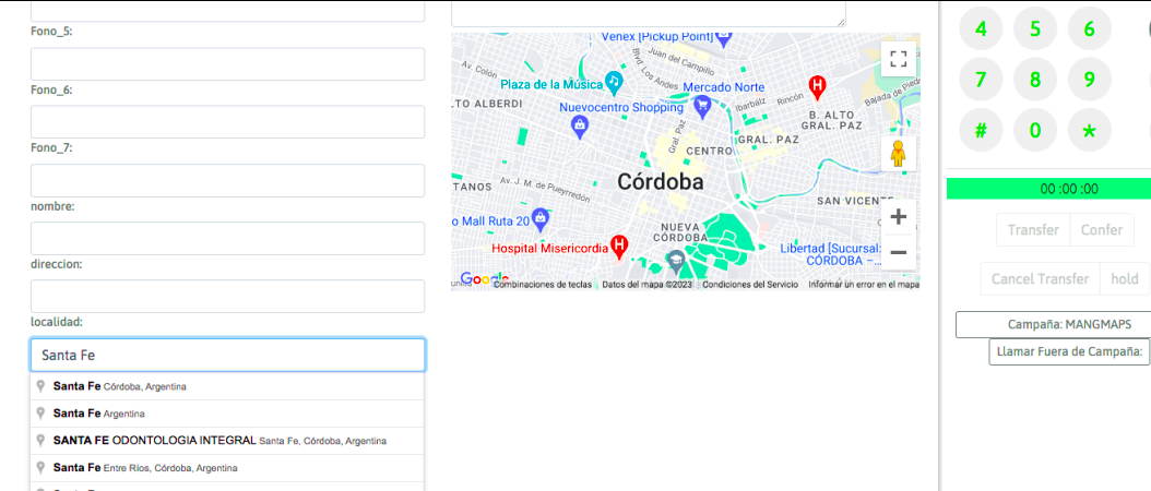 Address Field: If you have activated the integration with Google API, this option allows you to select the database field that will serve as the Contact's Geolocation. The associated map will be included within the record in the Agent Console.