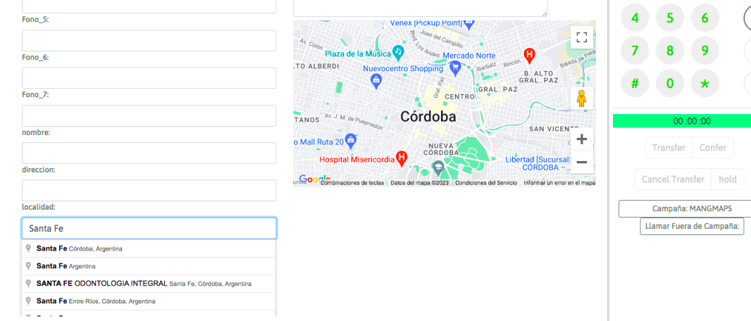 Address Field: If you have activated the integration with Google API, this option allows you to select the database field that will serve as the Contact's Geolocation. The associated map will be included within the record in the Agent Console.