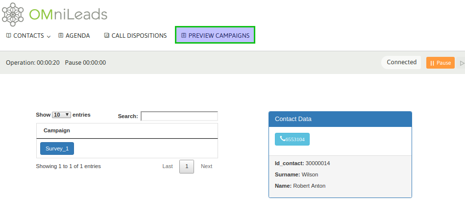 Finally, our campaign is ready to start operating. Therefore, when the agents assigned to it log in to the platform, they should have the preview campaign available, as shown in the following figure: