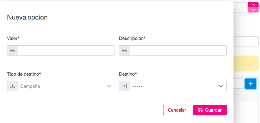 Options can be entered as desired from the "+" button, and will have to be related to the Welcome Message configured in the Wizard.