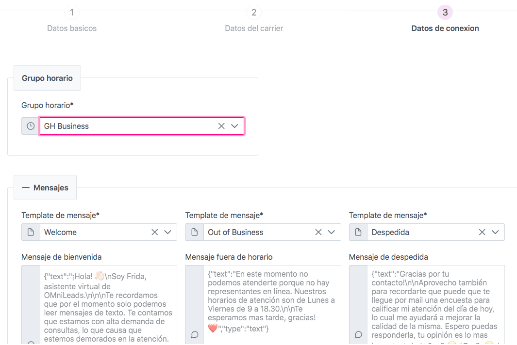 The second section incorporates Carrier Data itself, with the aim of connecting the API with the OMniLeads Channel Orchestrator: