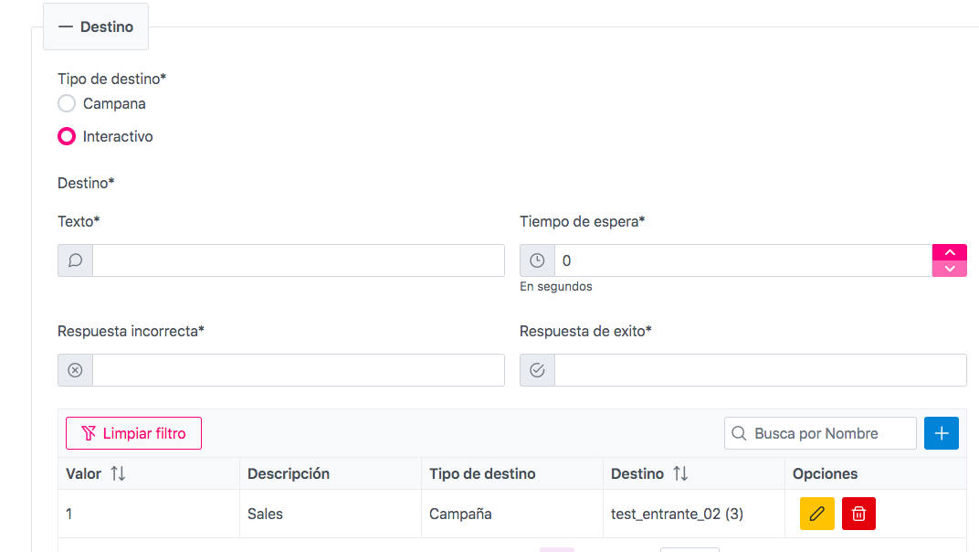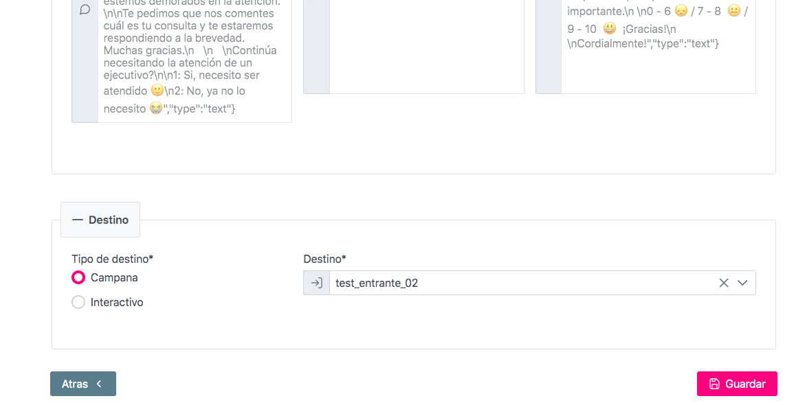 Destination: name of the campaign that will ultimately be the destination of the interactive message.