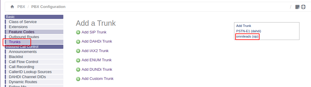Once the SIP trunk has been generated on the IP-PBX side, the counterpart corresponding to OMniLeads is generated.