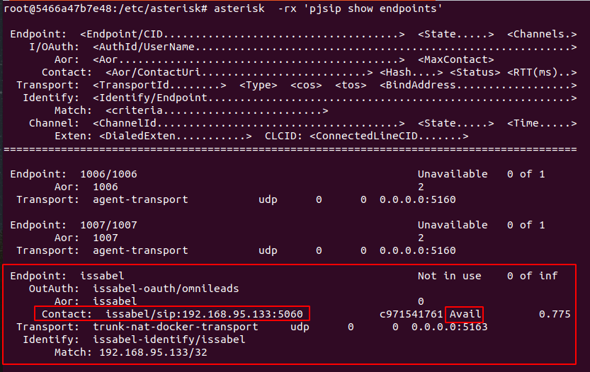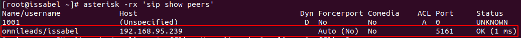 Once our trunk is effective, we proceed to check if Issabel is accessible from OMniLeads, using the OMniLeads Asterisk CLI.