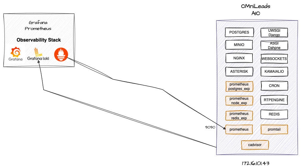 **Loki**: used to store log files from OMniLeads components such as Django, Nginx, Kamailio, etc.
