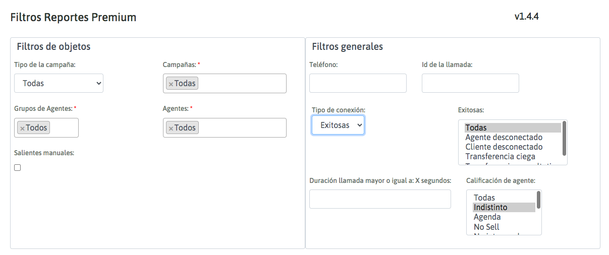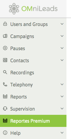 * Service Level: allows the selection of a service level distributed in blocks of seconds, with the aim of counting the calls answered in each block of interest.