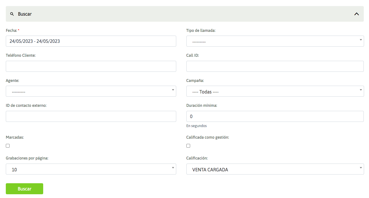 * Qualified as management: As we know, in OMniLeads there are ordinary qualifications and "management" qualifications, which are the ones that trigger the campaign forms. In this case, this check allows you to recover calls qualified with this type of qualification. For example: sales, survey, etc.).