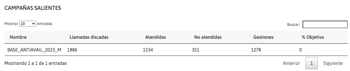 As in the previous point, outgoing campaigns also have a summary updated in real time, of the results of each campaign: Calls dialed, answered, unanswered and the positive actions (\*) of each one.