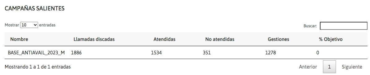 As in the previous point, outgoing campaigns also have a summary updated in real time, of the results of each campaign: Calls dialed, answered, unanswered and the positive actions (*) of each one.