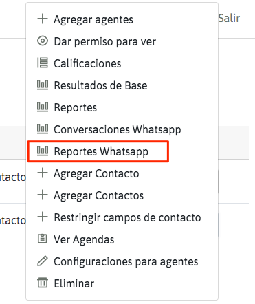 To access the WhatsApp Reports, you must click on Options -> WhatsApp Reports of the Incoming Campaign for which the channel is enabled and configured: