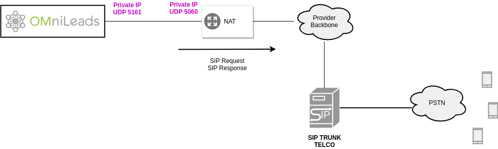 When declaring the SIP trunk on the other end, keep in mind that OMniLeads will use SIP UDP port 5161 in these NAT-FREE environments.