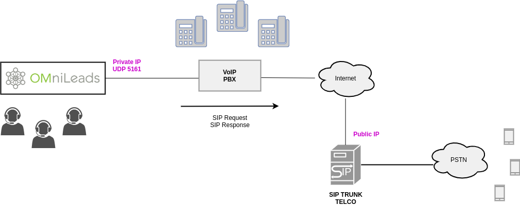 The following scenarios are proposed for OMniLeads instances and their connection to a SIP provider terminating to the PSTN.