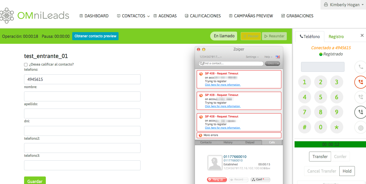 También es posible registrar un clásico "Softphone" al PSTN-Emulator para interaccionar con la Suite de OMniLeads y simular llamadas.