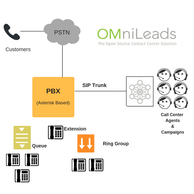 OMniLeads resulta ideal para las compañías que demandan funcionalidades típicas de Contact Center, que el sistema PBX no llega a cubrir por su propia naturaleza. Por lo tanto, OMniLeads surge como una alternativa para complementar dicha central PBX, desde una instancia independiente (bare-metal host, virtual machine o infraestructura de cloud) integrada a la PBX, permitiendo el fluir de las comunicaciones entre ambos componentes, de manera fiable, segura y transparente.