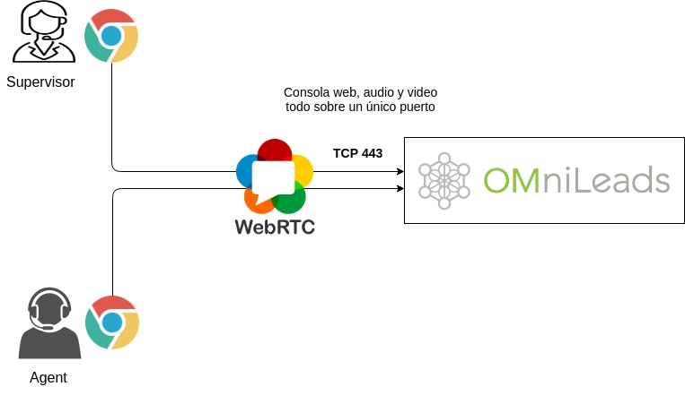 WebRTC dota a un navegador web de la posibilidad de mantener comunicaciones real-time de voz, video, chat y compartición de pantalla. OMniLeads se nutre de ésta tecnología para nuclear las comunicaciones y la interfaz de gestión web, evitando el uso de aplicaciones de escritorio «softphones», lo cual otorga una inmediatez en términos de «click and work» en el alta usuarios, ya que a partir de un login web, dichos usuarios están en línea procesando comunicaciones.