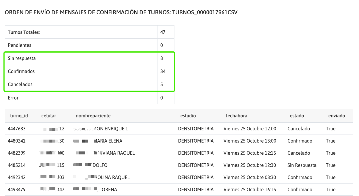 Para poder visualizar los resultados parciales/totales de la campaña de envío masivo, bastará con clickear sobre el nombre de la base de datos en la Lista de Órdenes de Envío.