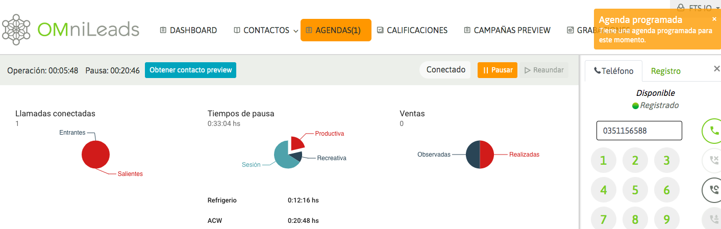 The agent has each contact scheduled and its description. By clicking on the phone number, the call is automatically triggered to the contact's phone number.